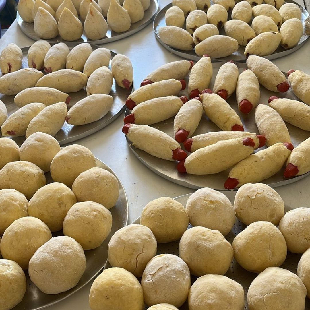 Aí já tinha os Brigadeiros, salgados, sucos é Queijo vendendo.